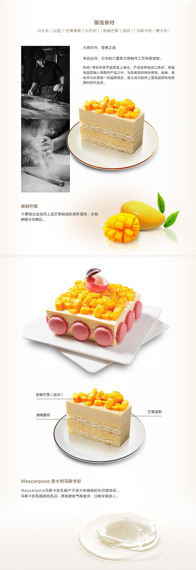 | 闪亮的夏日之星,新鲜的阳光澳洲芒果,意大利的马斯卡彭轻乳酪、法国马卡龙、软香蛋糕的完美组合,晶莹透亮,饱满浓香,层层口感,芒果的味道在此升华,这是活力的气息,阳光的味道。 |