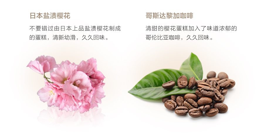 树莓(法国) / 咖啡(哥斯达黎加) / 盐渍樱花(日本) / 马斯卡彭(意大利)